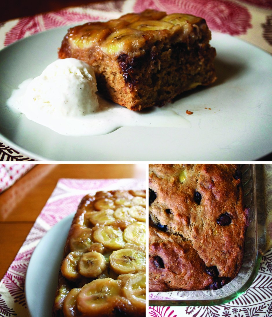Upside Down Banana Chocolate Chip Cake (adapted from Dave Lebovitz):