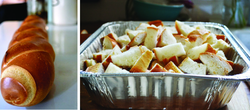 For the bread filling, I used a long fresh loaf of french bread from a local bakery. You could also use any soft good white bread (italian or ciabatta). My only issue was that it was a bit “bready” for my taste, but plenty of coworkers liked it. If you like bread, you’ll love it, but if you are like me and want more EGG, then I recommend reducing the quantity of bread (only use 1/2 to 3/4 of the loaf) and reduce the milk by 1 cup (use 3 cups instead of 4 cups).