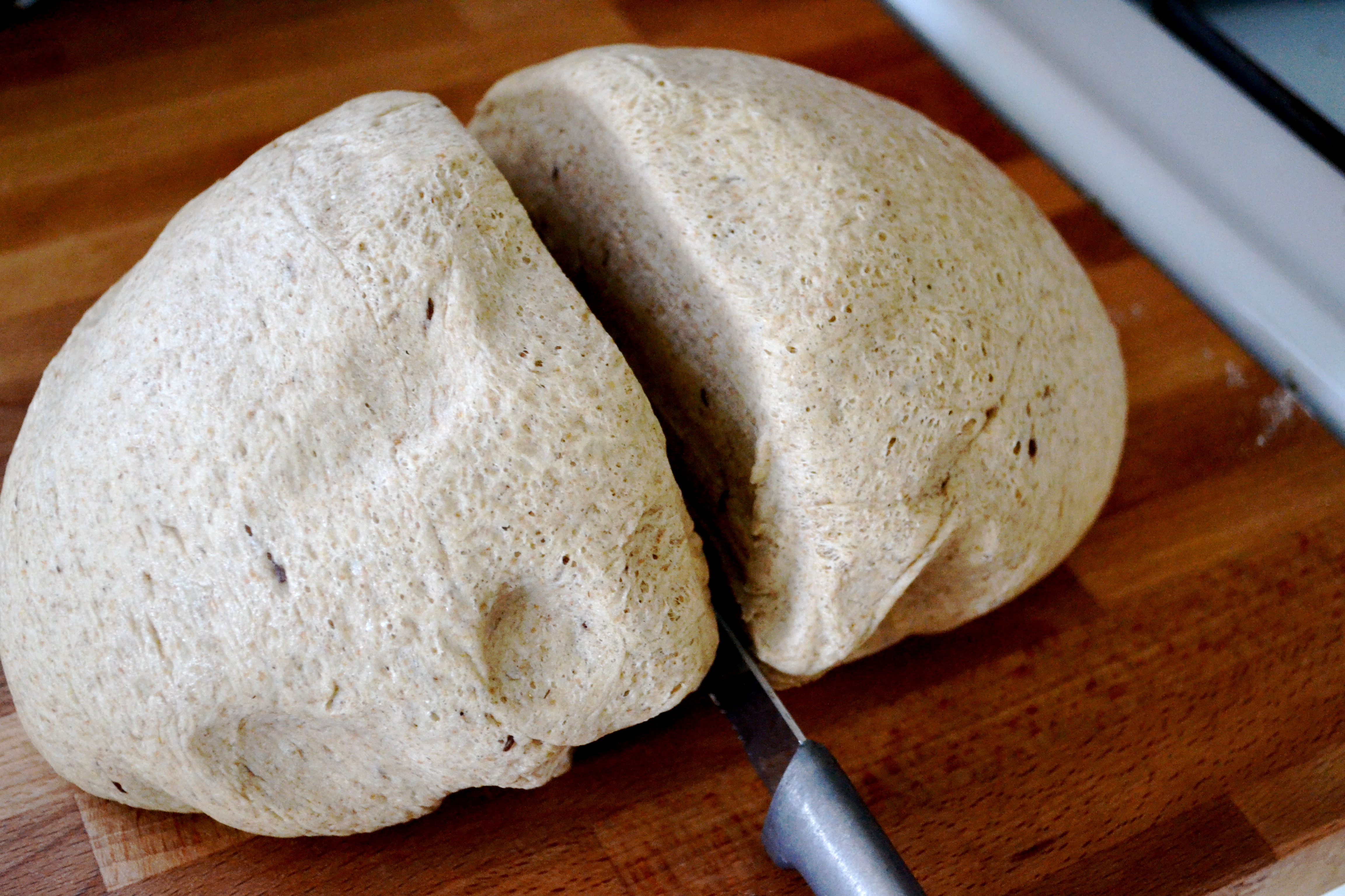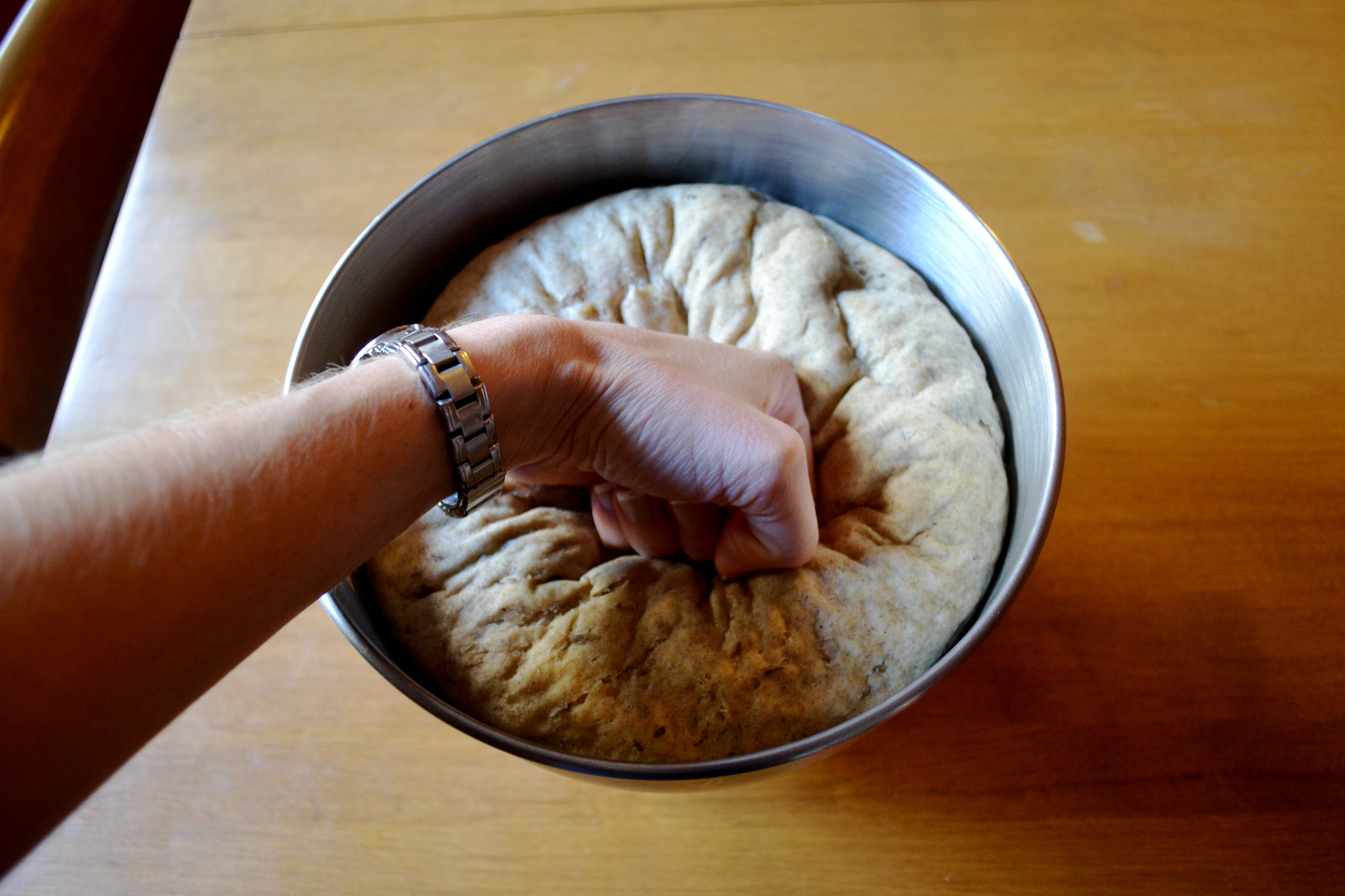 (Note: If you are making this in the winter and have a cold kitchen, turn your oven on low and place the bowl with the dough in it on the oven and allow it to rise in this warmer environment.)