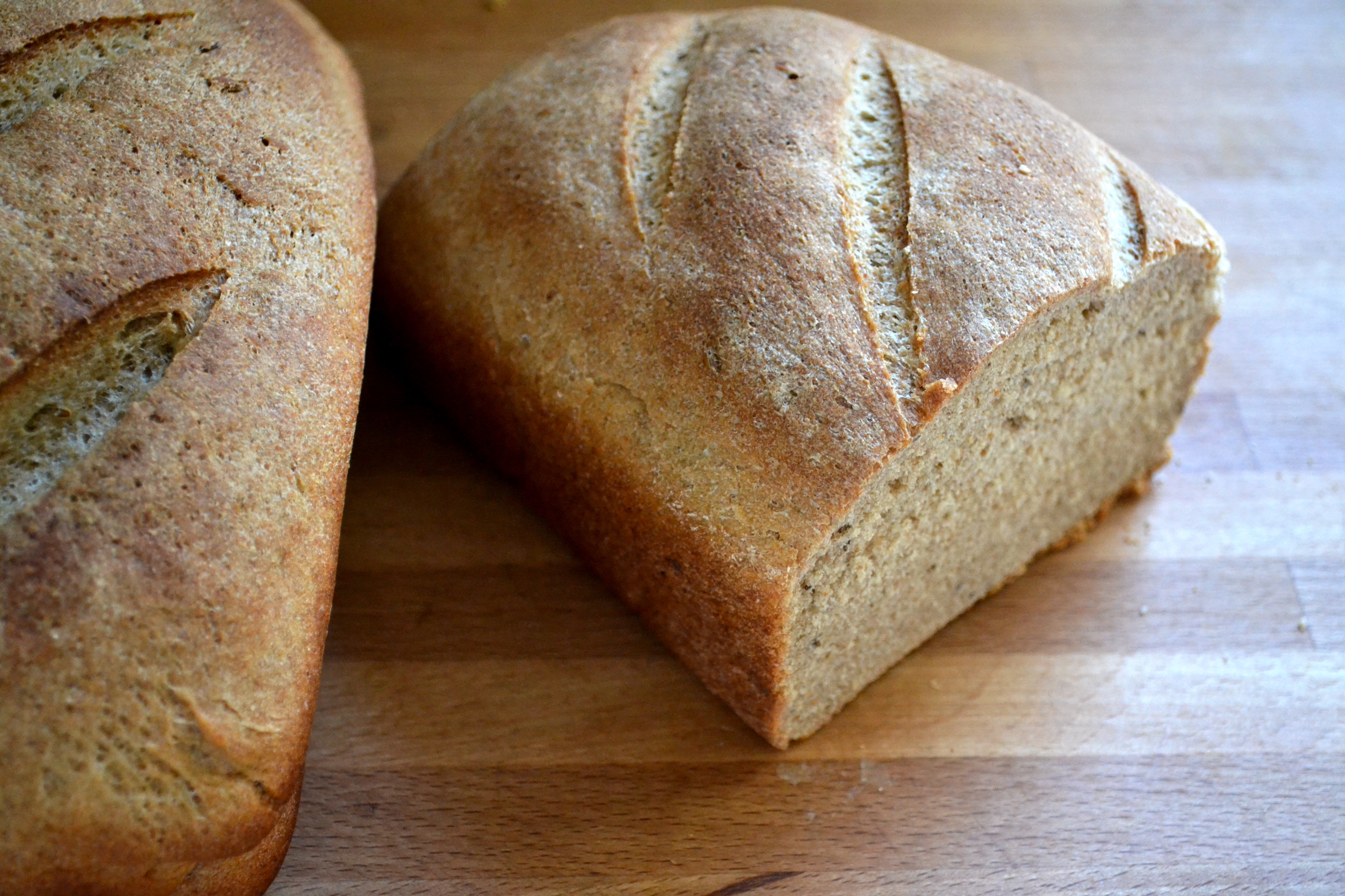 This bread is aromatic and is tinted with molasses. I love molasses. Not only is it a wonderfully warm-smelling sweetener, but it is the only sweetener that has vitamins and minerals. When choosing a molasses, use good blackstrap unsulphured molasses.