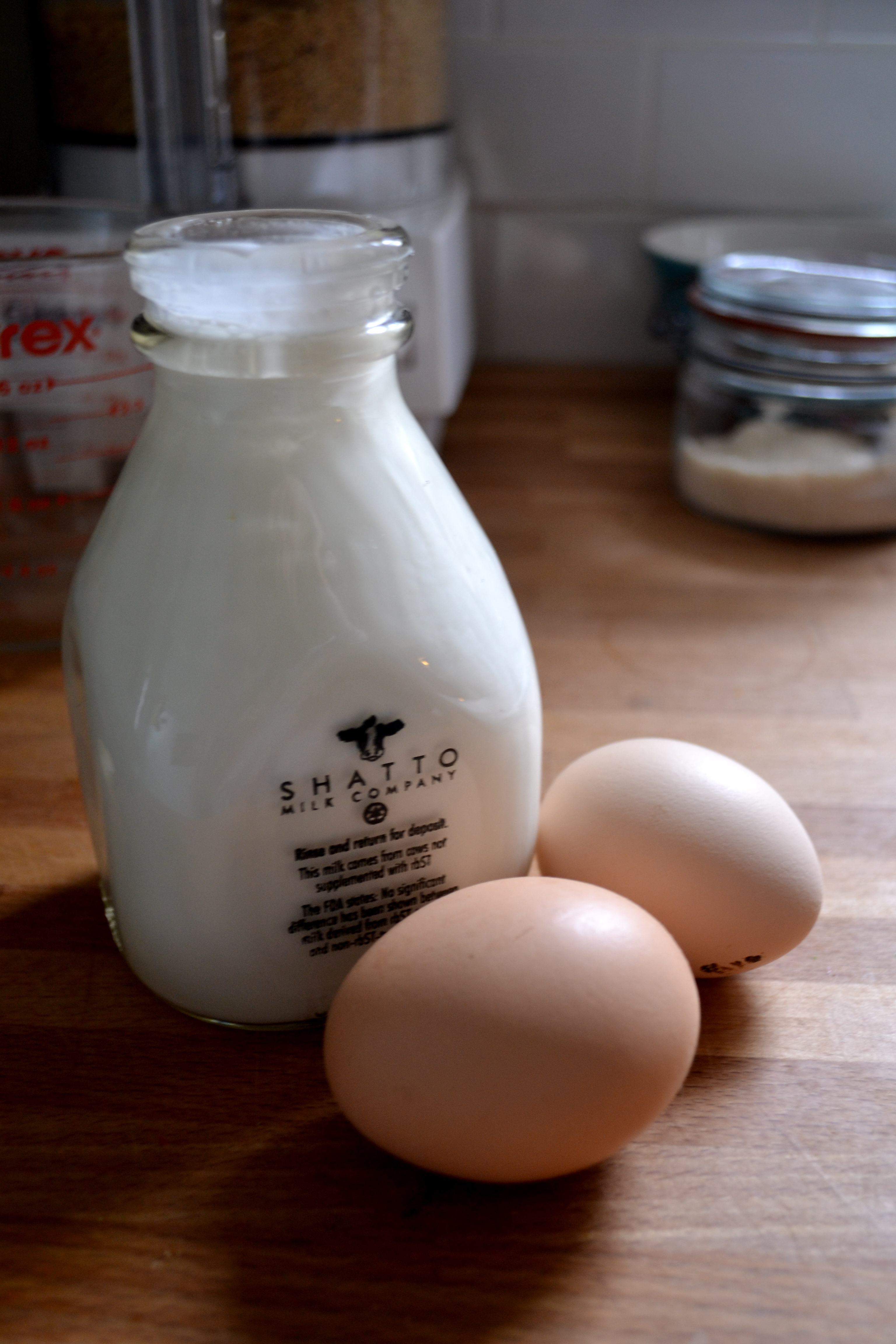 Can you tell which two eggs in the above picture are farm fresh from cage free chickens? I only had two left and had to supplement with store-bought eggs.