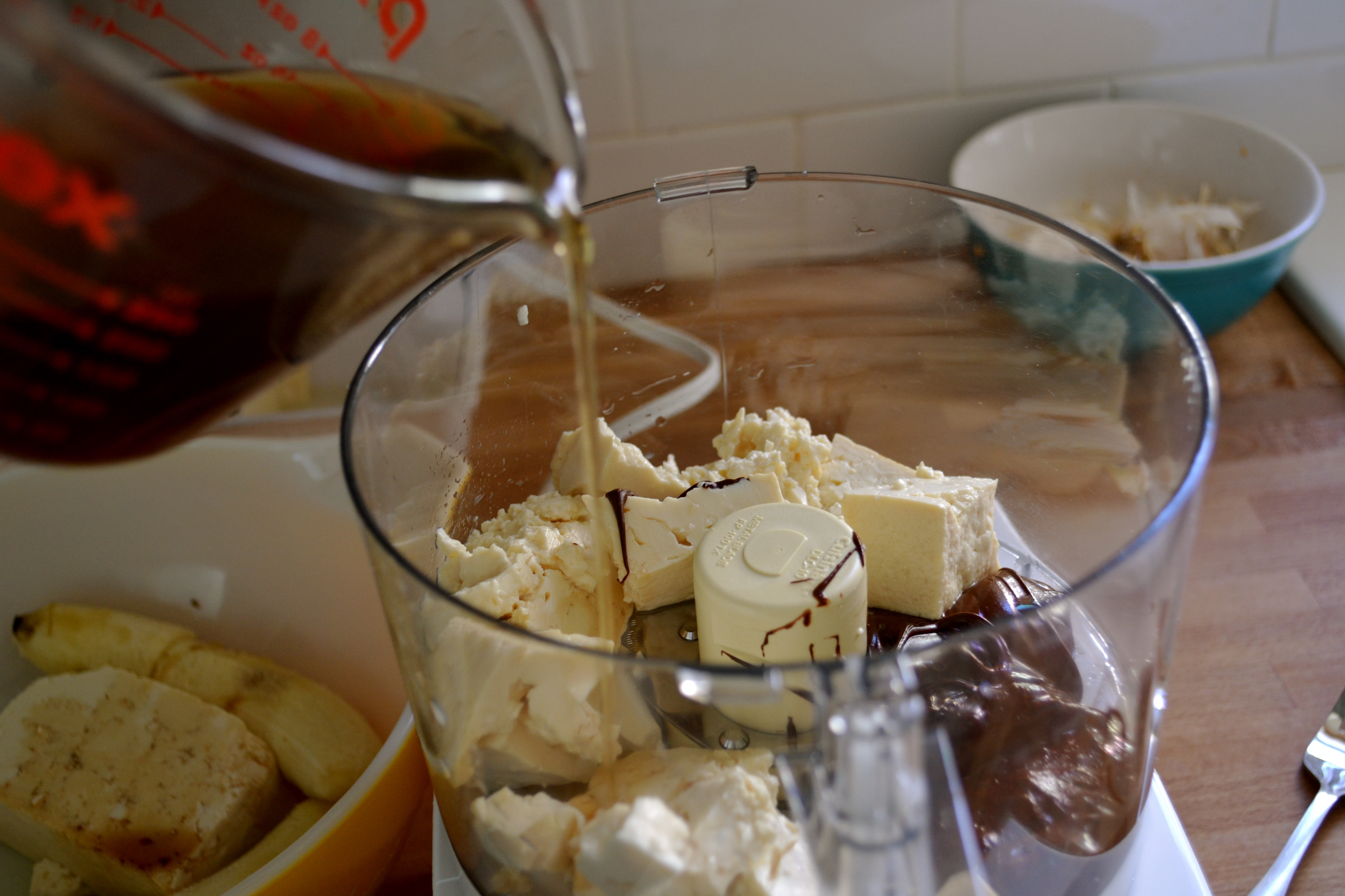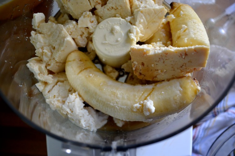 - Place the other half of the tofu in the food processor along with the bananas, the remaining vanilla extract, and the remaining sugar syrup. Puree until well blended. Add a dash or two of salt. Blend in and taste. Place banana pudding in a separate bowl with a lid. Refrigerate for at least 30 minutes.