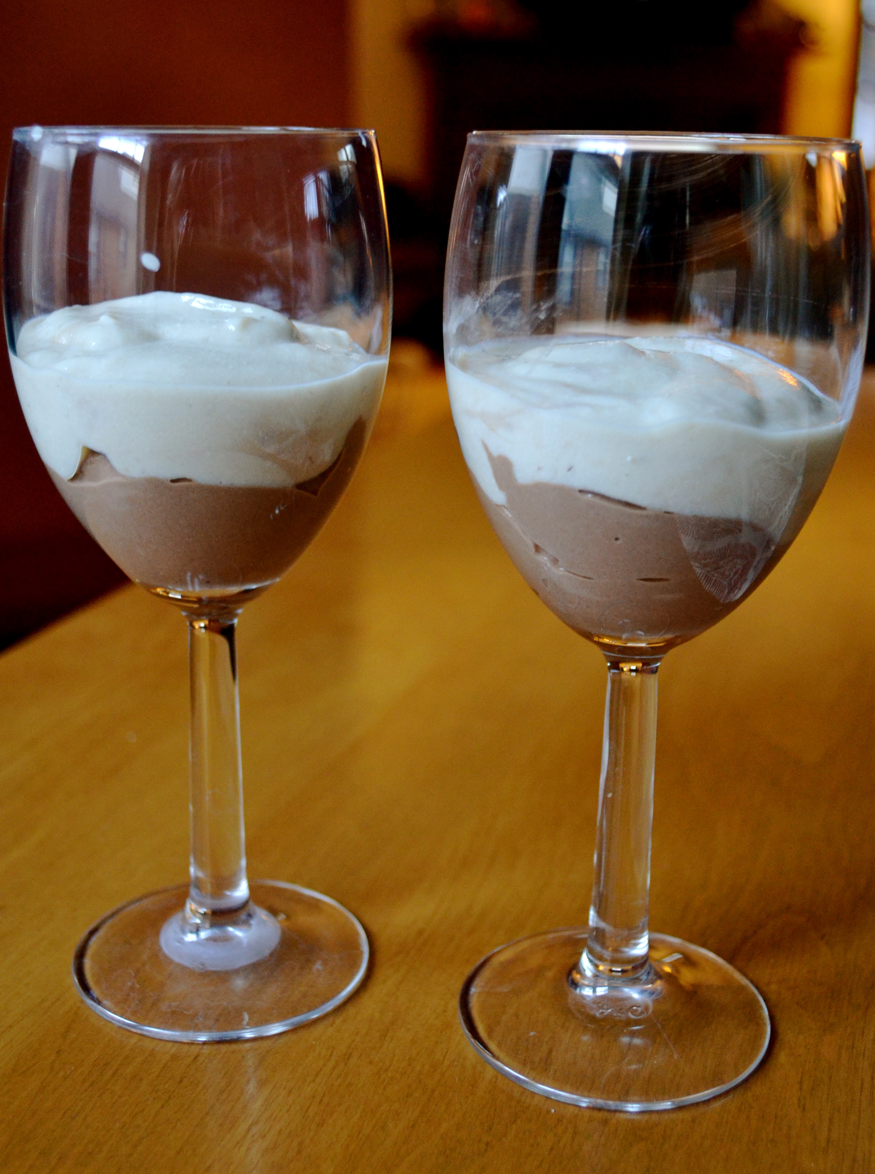 Healthy Chocolate and Banana Pudding Parfaits (serves 6), slightly adapted from Mark Bittman’s Food Matters Cookbook
