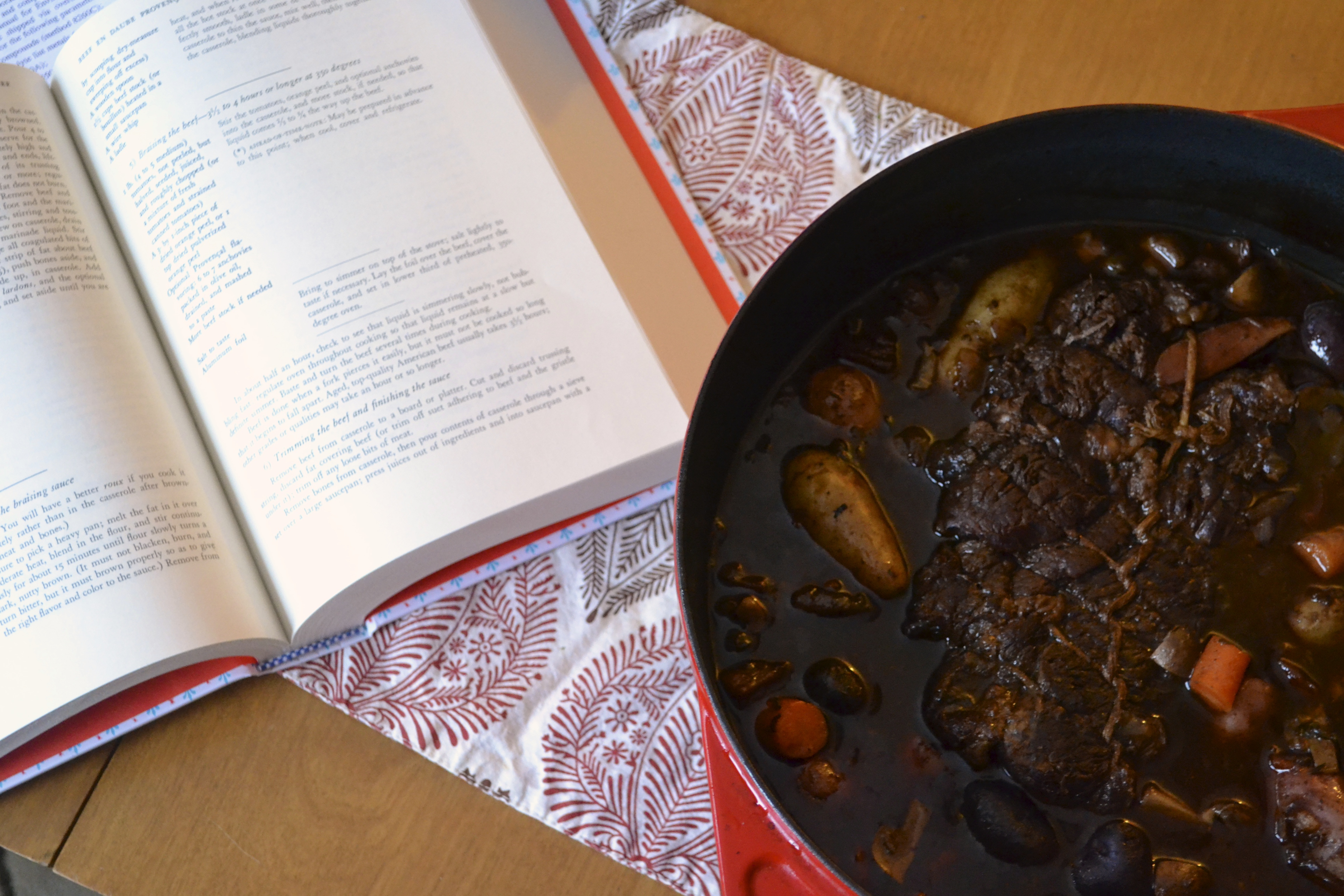 But lately, I have been wanting to work on certain “cooking school” basic techniques. This means that I actually need to study master recipes and stock up on ingredients specific to that meal. And who better to learn basic cooking techniques from than the master herself…Julia. Yes, Julia Child and her fabulous “Mastering the Art of French Cooking” series are the best assets to any home cook wanting to improve their skills. My husband bought me the set for Christmas!!! I have been wanting to master Julia’s basic braised beef pot roast recipe (Boeuf En Daube A La Provencale). It is basically the love child of Beef Bourgingone and the best pot roast you can imagine. Comfort food at its best.