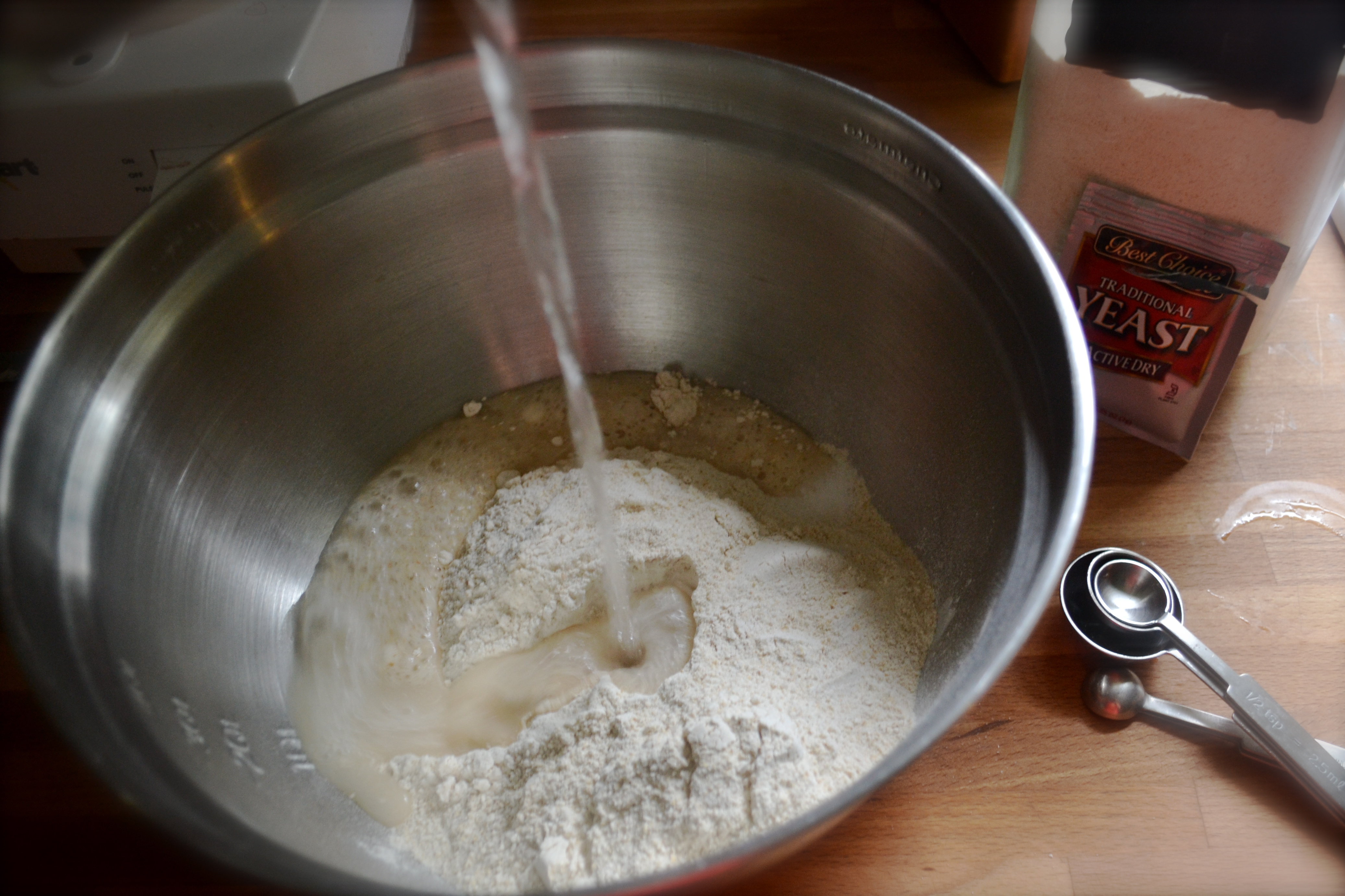 1. Yeast hates hot water…it will kill those suckers. So use luke-warm water. This means that the water feels just a little warm to the touch (no hotter than 100 degrees F). Cold water from the tap will work also, but the initial rise time will take much longer. If your water at home has a funky flavor, I recommend buying distilled or filtered water, because your bread will then get the funk…and not a good funk. Otherwise, tap water will be fine.