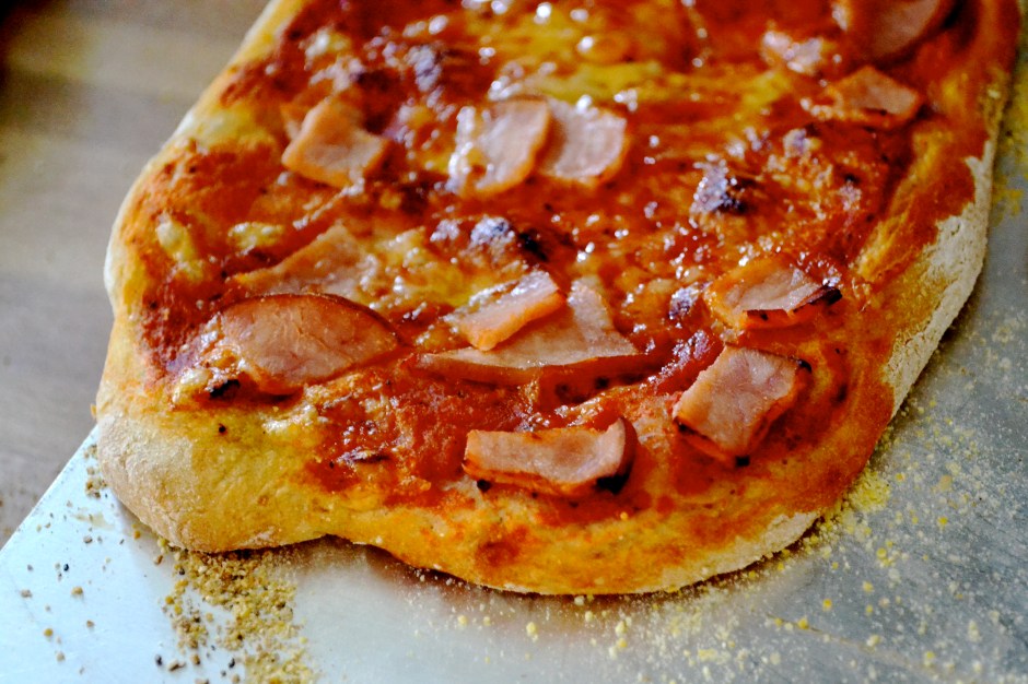 - Slide the loaf directly onto the hot preheated pizza stone (or you can place the greased cookie sheet directly on the stone if you can’t slide the loaf off of it). Pour 1 cup of hot tap water into the preheated broiler tray and quickly close the oven door.