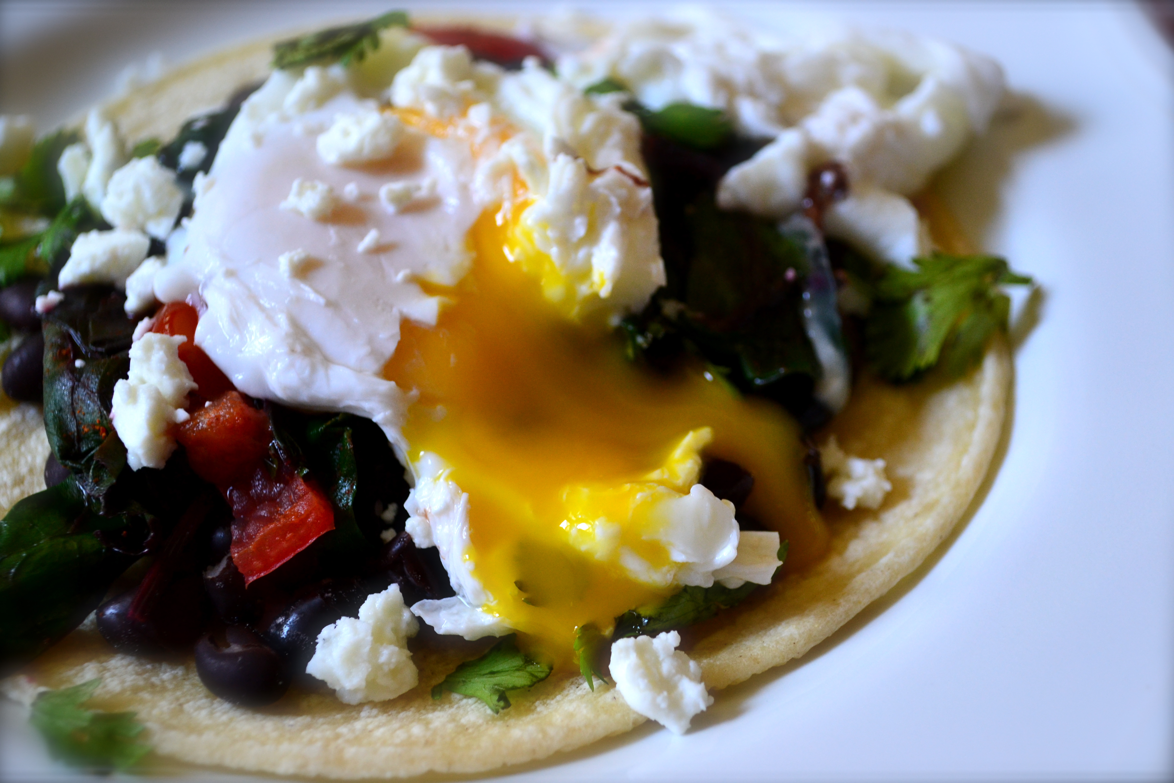 4. Place toasted bread on plate. Top with sautéed chard and poached egg. Season with salt and pepper.  I topped mine with fresh slivered basil and goat cheese also. Mmmm.
