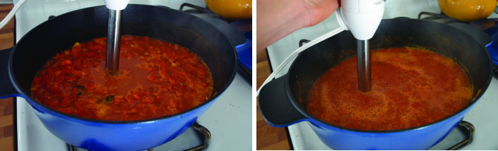 - Because this makes quite a bit, you will have to do this in batches. Combine half of the ingredients into a food processor or good blender. Blend until smooth. Pour into a container.