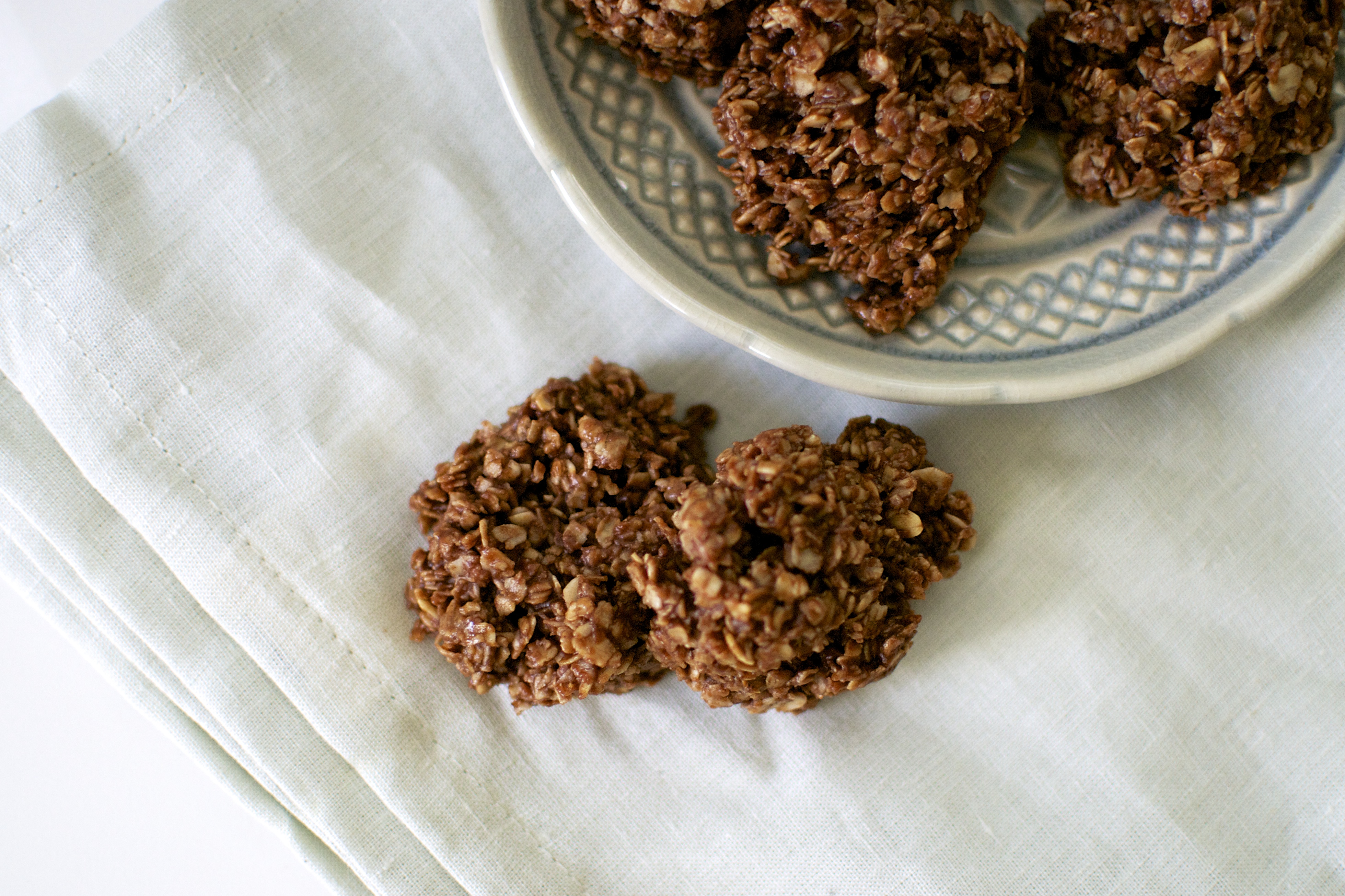 When I was in college and times became super stressful, I would always turn to my grandma’s No-Bake Cookie recipe. It took less than 10 minutes to have a handful of devilishly delicious, misshapen, peanut butter-chocolatey goodness. And hey, it had oats in it…soooo it has to be good for me, right?