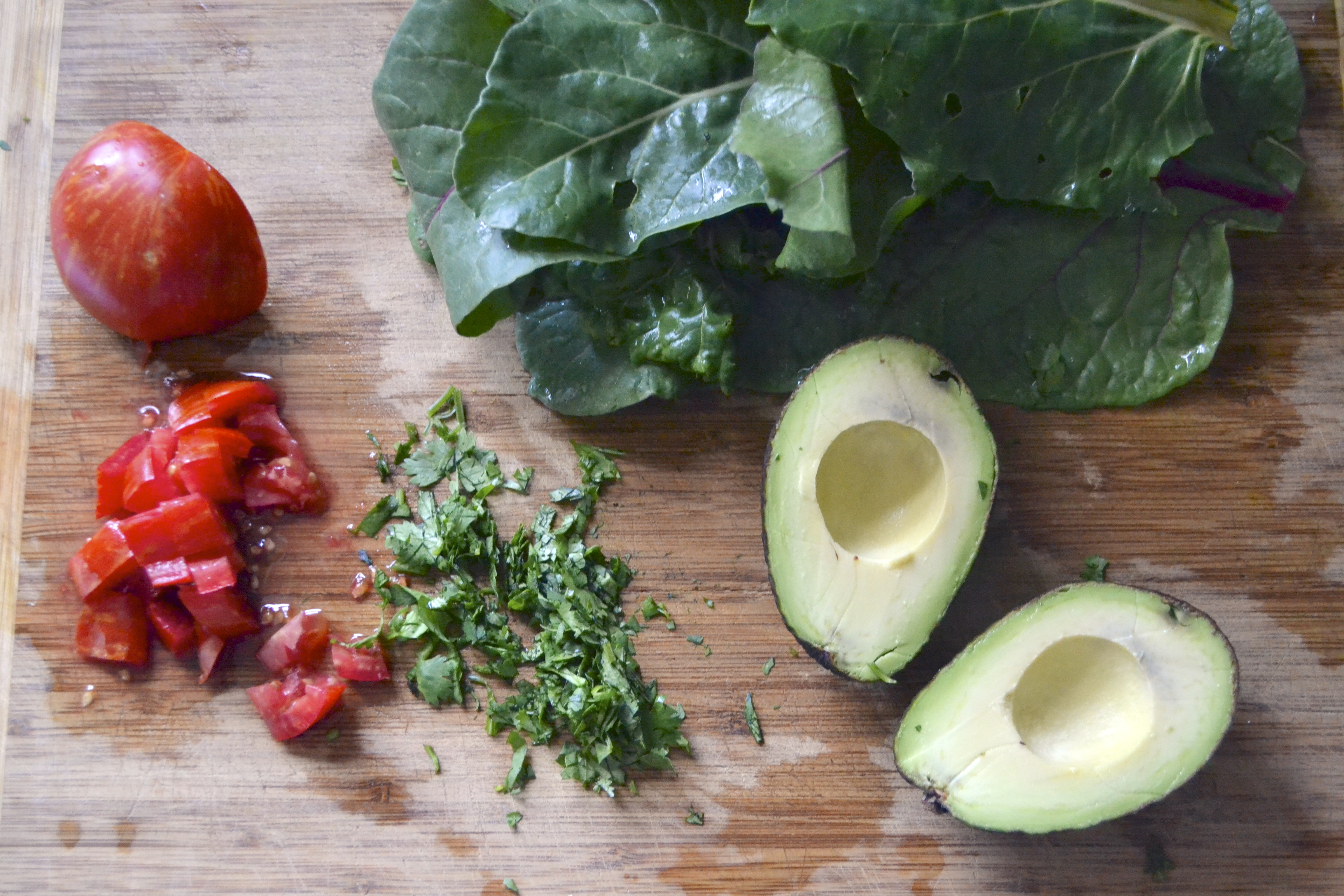 - Four generous handfuls of spring greens mix (such as, leaf lettuce, baby kale, arugula, beet greens, etc.), gently rinse and dry