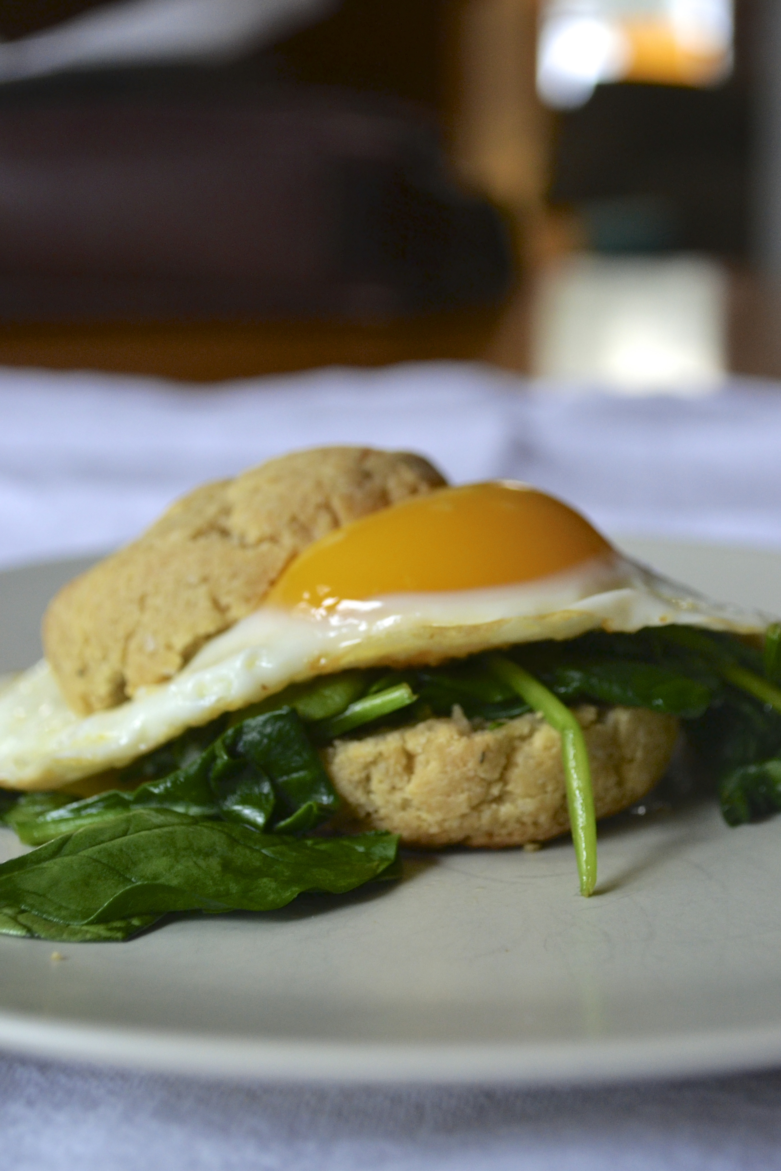 4. To finish the whole thing off, cook the eggs separately to each persons desired consistency. I love my eggs either poached or sunny side up, but the Breakfast Man likes over-easy eggs.