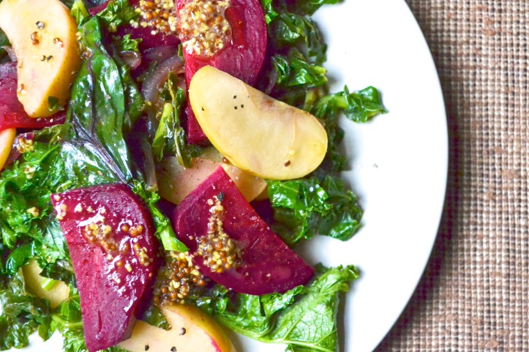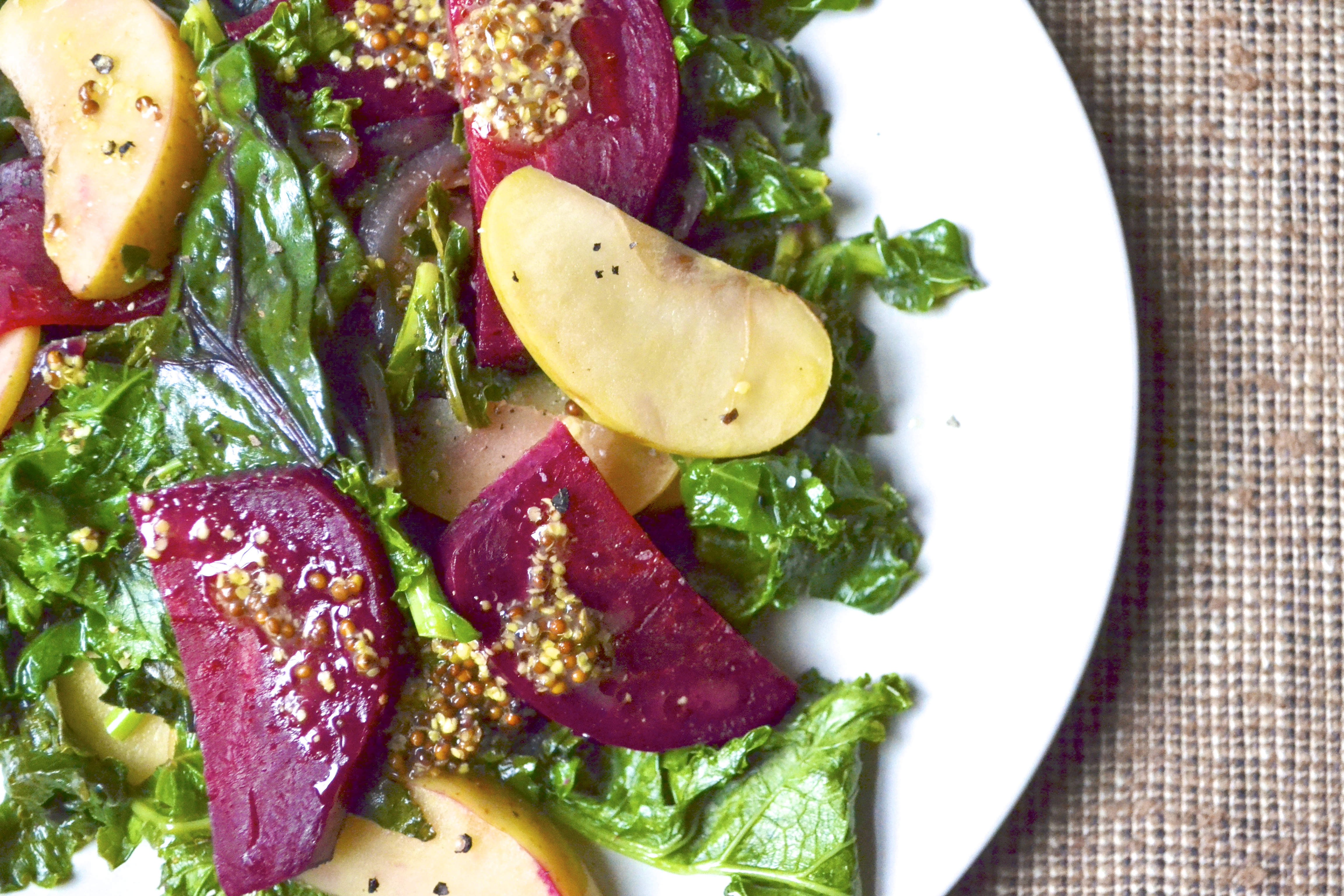 Note – This salad does not really have a set list of ingredients and can morph into whatever you have on hand. I have provided a gentle guide for what I like to use, but feel free to mix and match with whatever greens you have on hand or can spot at your local farmer’s market.