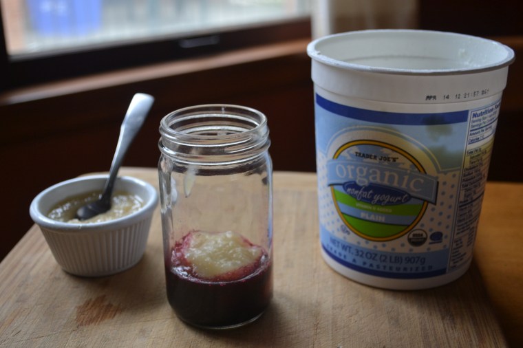 - In a heavy saucepan placed over medium heat, cook rhubarb, strawberries, water, and 3 tablespoons of honey for about 10 minutes, stirring frequently and smashing the fruit with the back of spoon. Mixture will begin to fall apart and look mushy. Turn off heat and allow to cool for about 5 minutes.
